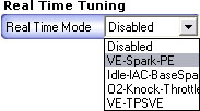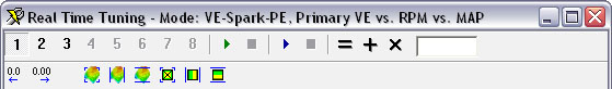 time tuning in the current mode. By default, all these tables will use what is located on the flash chip until you enable them by using the play buttons. Each time you key off or cycle the ignition, any changes made to the table in RAM will be lost and refreshed with table data from the flash chip. |